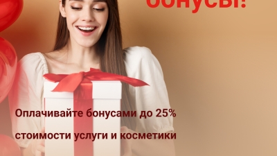 Оплатить бонусами вы можете 25% от стоимости услуги или товара магазина.